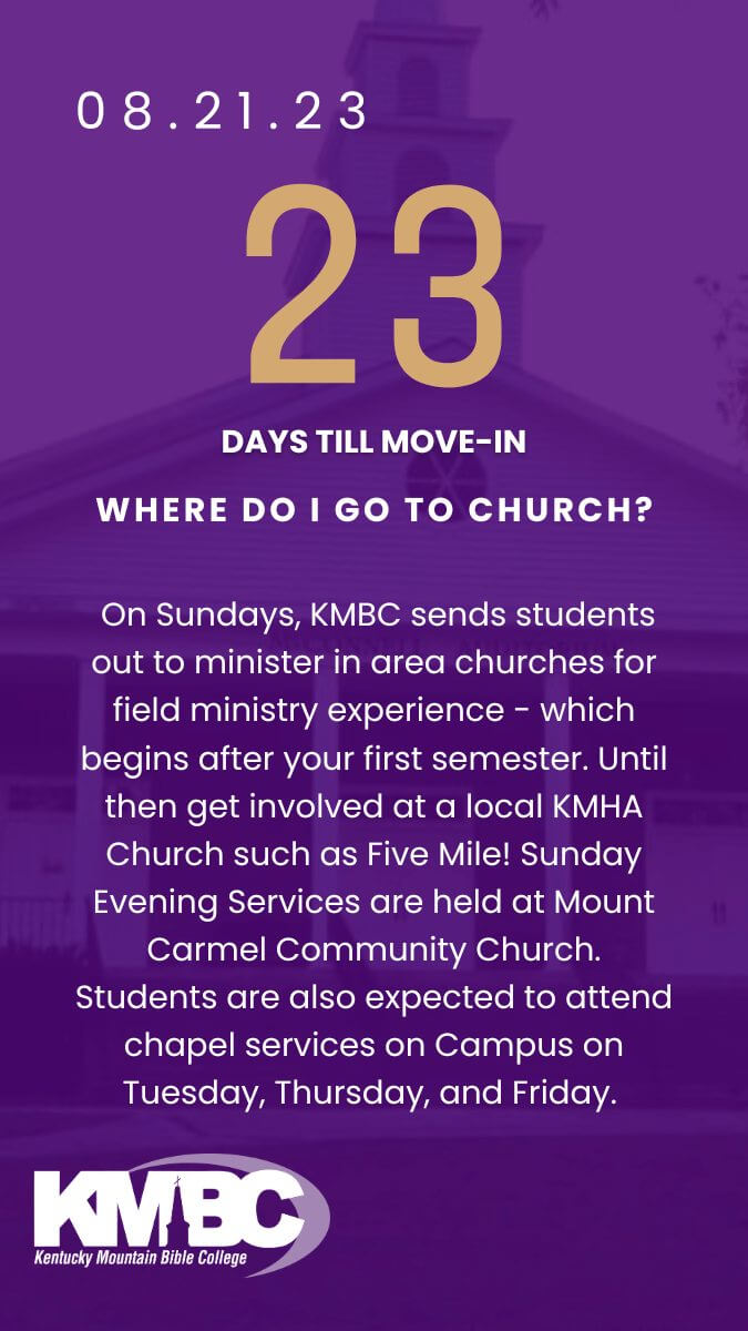 © 2024 Kentucky Mountain Bible College is a private, accredited Christian college in Kentucky offering traditional and online classes for ministry. | 855 Hwy 541 | Jackson, KY 41339 | (606) 693-5000